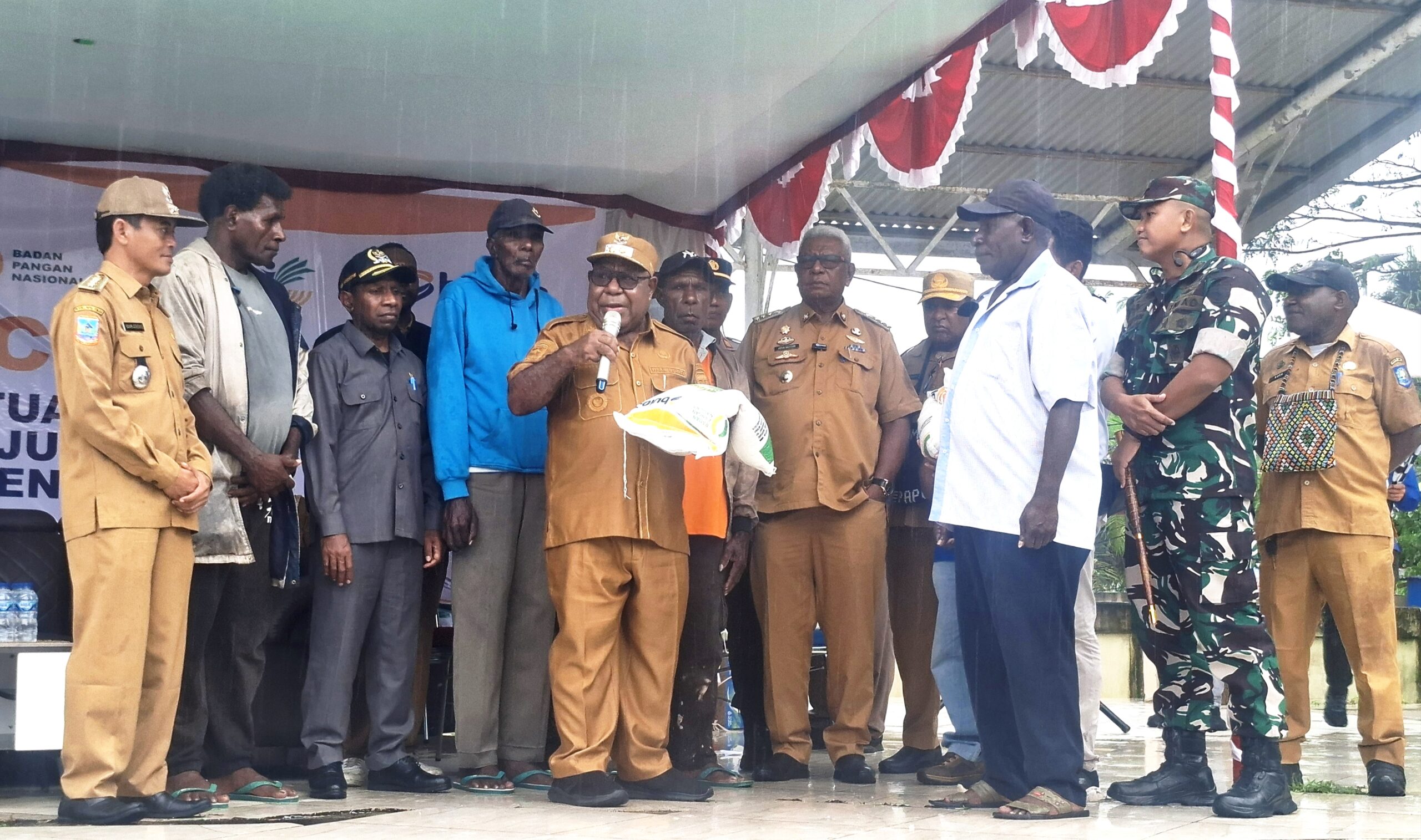 Bupati menyampaikan ucapan terimakasih kepada pemerintah pusat yang telah memberikan bantuan beras kepada masyarakat di kabupaten Mimika melalui PT. Bulog. Pada tahun 2023 launching peluncuran bantuan beras ini pernah juga dilaksanakan namun dengan angka yang cukup tinggi.