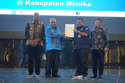 Timika — Pemerintah Kabupaten Mimika bersama Kantor Wilayah BPN Provinsi Papua dan Kantor BPN Kabupaten Mimika melakukan penyerahan sertifikat tanah hasil program redistribusi tanah, tanah wakaf, tana...