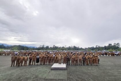 Timika – Pj. Sekda Mimika, Petrus Yumte menjadi pembina pada Apel Gabungan di lingkup Pemerintah Kabupaten Mimika, Provinsi Papua Tengah, pada Senin (28/07/2025). Bertempat di Lapangan Kantor Pu...