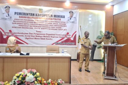 Timika – Pemerintah Kabupaten Mimika, Provinsi Papua Tengah melalui Badan Kesatuan Bangsa dan Politik (BKBP) Kabupaten Mimika menggelar kegiatan bimbingan teknis (bimtek) Aplikasi “Meno Sidak Ka...