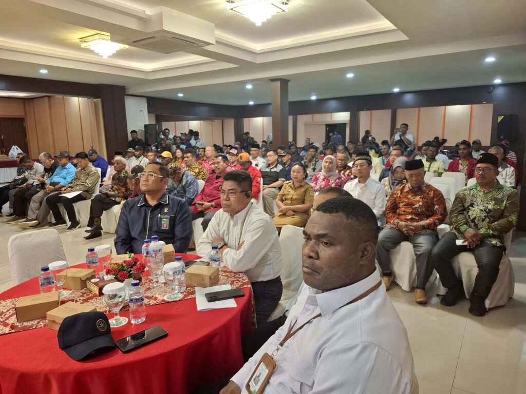 Timika – Badan Kesatuan Bangsa dan Politik (Bakesbangpol) Kabupaten Mimika menggelar Rapat Koordinasi Forum Komunikasi Pimpinan Daerah (Forkopimda) bersama tokoh masyarakat, tokoh agama, tokoh perempuan, dan tokoh pemuda. Kegiatan ini berlangsung di Ballroom Hotel Cenderawasih 66, Selasa (02/09/2025).