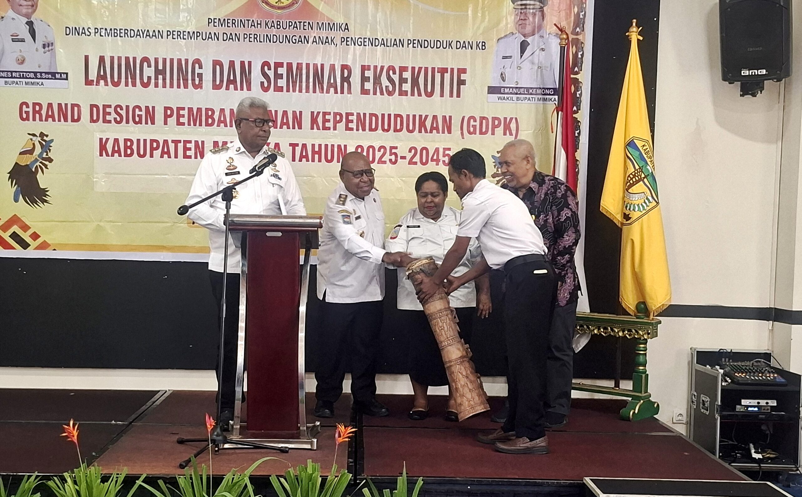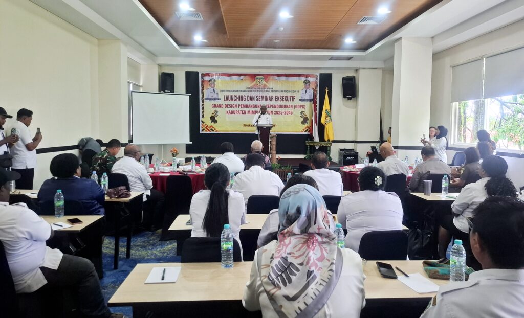 Timika – Pemerintah Kabupaten Mimika melalui Dinas Pemberdayaan Perempuan, Perlindungan Anak, Pengendalian Penduduk dan Keluarga Berencana (DP3AP2KB) menggelar Launching Grand Design Pembangunan Kependudukan (GDPK) Kabupaten Mimika Tahun 2025–2045 sekaligus Seminar Eksekutif, yang bekerjasama dengan Universitas Cenderawasih, bertempat di Hotel Horison Ultima Timika. Rabu (13/08/2025).