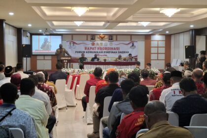 Timika – Badan Kesatuan Bangsa dan Politik (Bakesbangpol) Kabupaten Mimika menggelar Rapat Koordinasi Forum Komunikasi Pimpinan Daerah (Forkopimda) bersama tokoh masyarakat, tokoh agama, tokoh perempu...