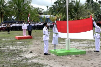 Kokonao – Upacara peringatan detik-detik Proklamasi Kemerdekaan Republik Indonesia ke-80 di tingkat Distrik Mimika Barat berlangsung khidmat di Lapangan Distrik, Kokonao, Kabupaten Mimika, Provinsi Pa...