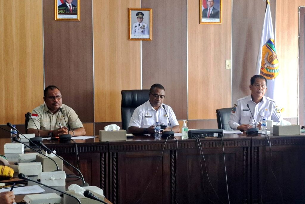 Timika – Dalam rangka menyambut peringatan Hari Ulang Tahun Ke-80 Republik Indonesia. Asisten Bidang Pemerintahan dan Kesra, Drs. Ananias Faot, M.Si yang juga selaku Ketua Panitia memimpin langsung rapat koordinasi persiapan kegiatan perayaan HUT RI di Ruang Rapat Kantor Bupati Mimika, pada Rabu (30/07/2025).