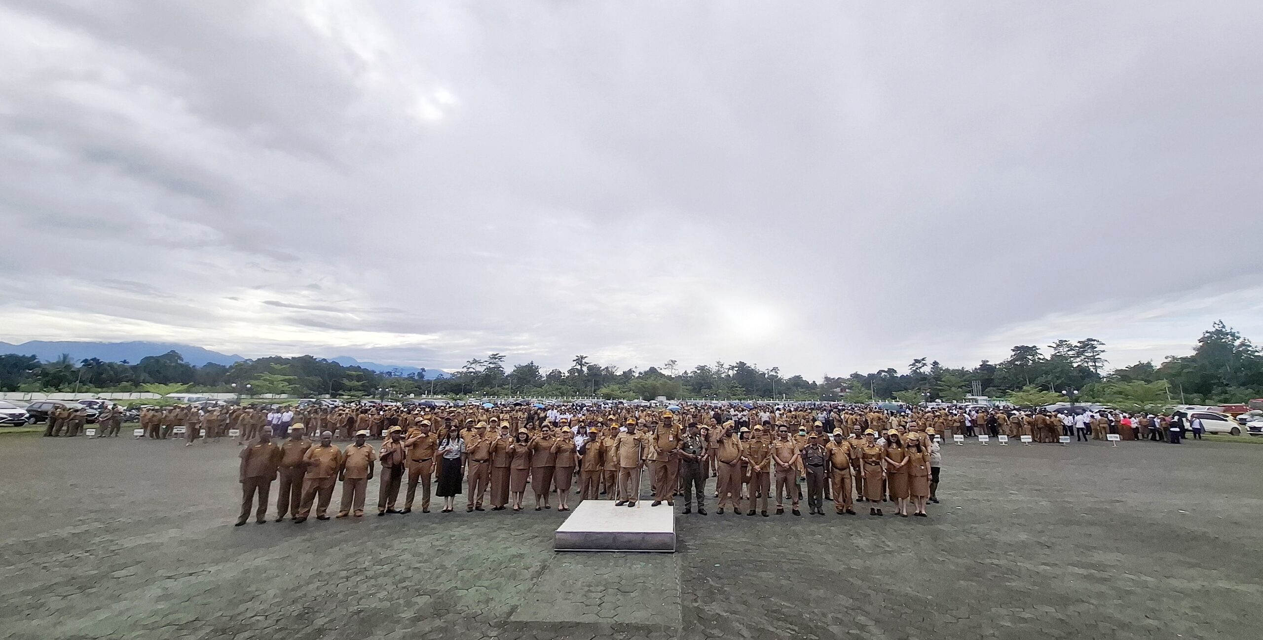 Timika – Pj. Sekda Mimika, Petrus Yumte menjadi pembina pada Apel Gabungan di lingkup Pemerintah Kabupaten Mimika, Provinsi Papua Tengah, pada Senin (28/07/2025). Bertempat di Lapangan Kantor Pusat Pemerintahan.